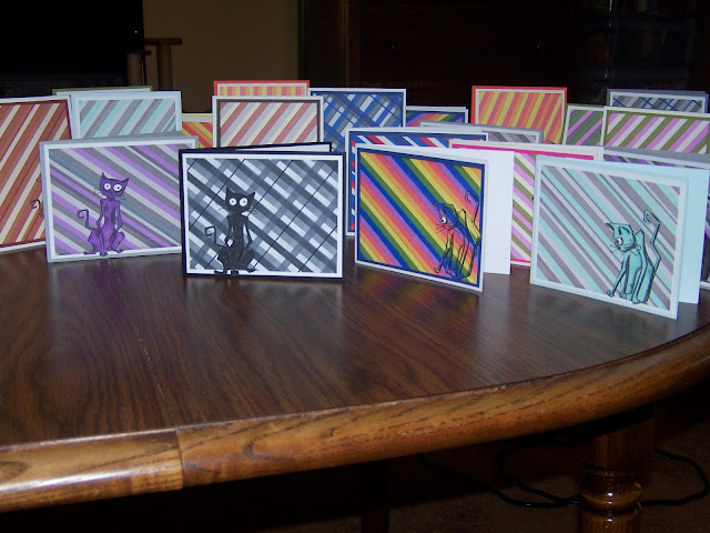 I did 20 cards. I send out twenty or so cards every month to shut ins, friends and family who need a card. These kitties seemed perfect for one of my monthly send outs!