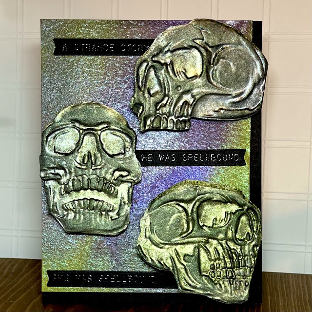 The other I ran through the Vagabond with the skulls embossing folder then cut out three of the skulls.