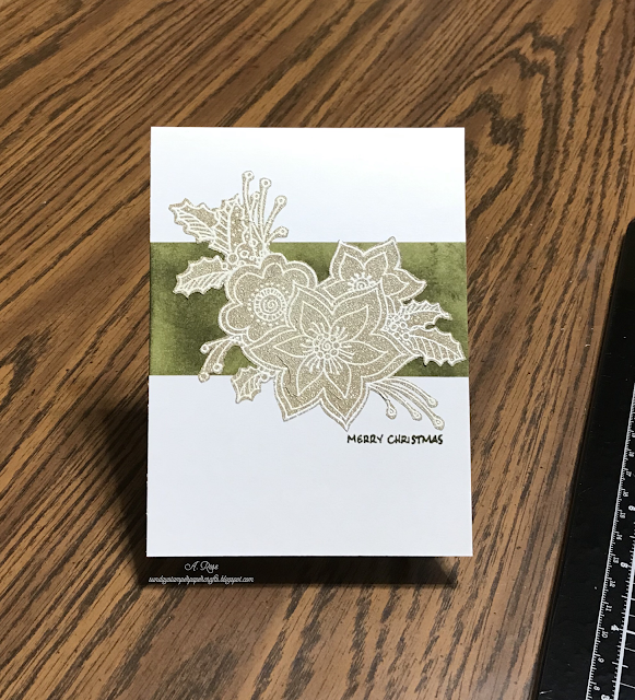 On a white card stock base card I taped off a strip and sponged it with Distress forest moss ink.